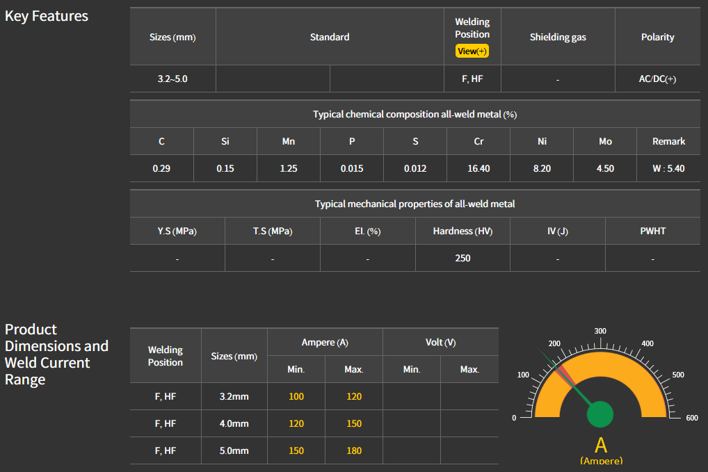 For impact and wear resistance at elevated temperature. Hardfacing of cutting tools, forming dies and shearing dies, etc. Served as both carbon dioxide and mixture gas, and stable arc performance in almost welding current