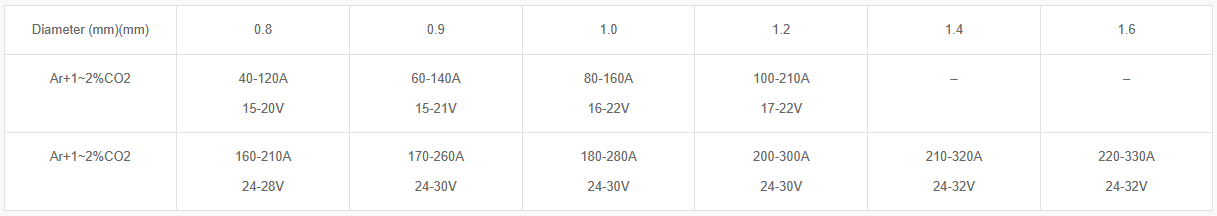 - Use Ar+1~2%O2 for spray transfer and Ar+1~2%CO2 for short-circuit transfer