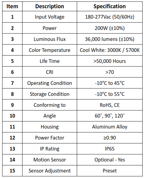 Model :NTPC-GHBC-200W