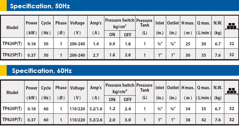 WALRUS TP8-P SERIES AUTOMATIC BOOSTER PUMP