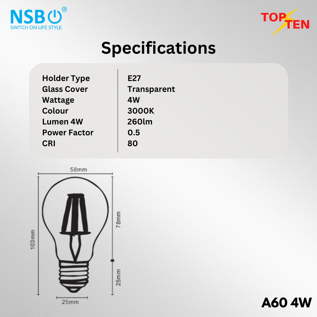 NSB A60 4W TRANSPARENT
