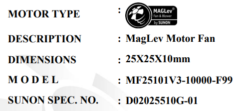 SUNON MF25101V3-10000-A99 25X25X10MM MAGLEV MOTOR FAN