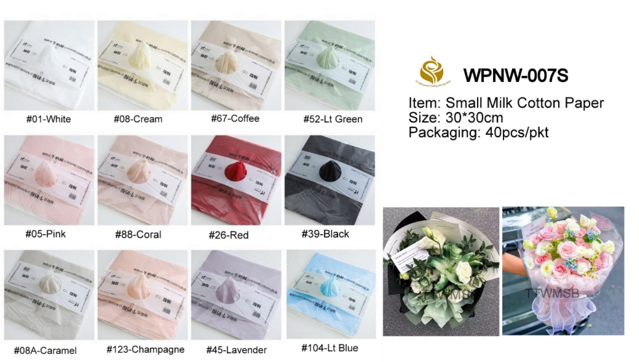 Our Small Milk Cotton Wrapping Tissue Paper is made from premium milk cotton fiber, offering a soft, silky texture with a delicate touch. Perfect for luxury packaging, this 30cm X 30cm tissue paper adds elegance and eco-conscious charm to your products. Ideal for wrapping gifts, fashion items, crafts, and more.