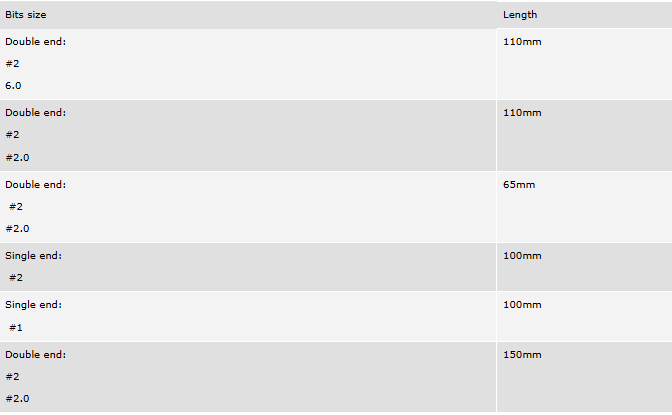 One PVC handle with 1/4” bits holder, Working length: 100mm