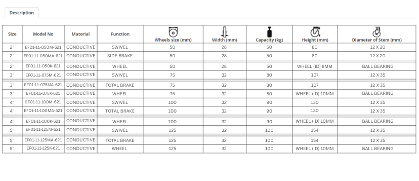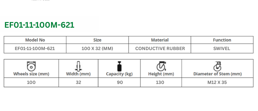 Conductive rubber wheel safely dissipates static charge to prevent ESD damage