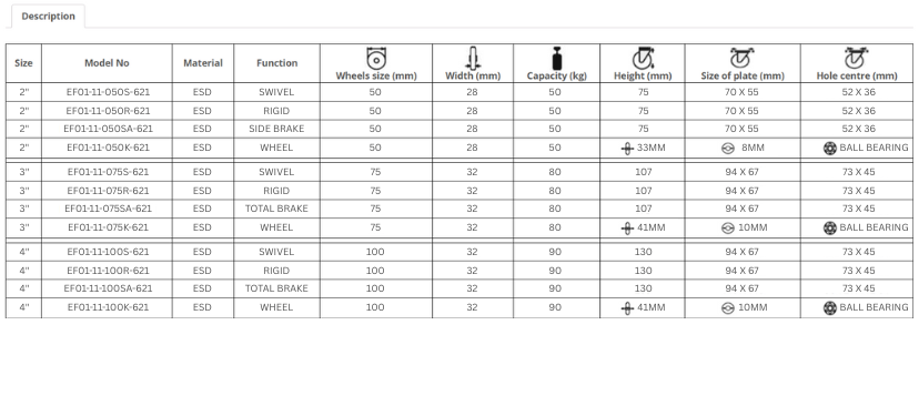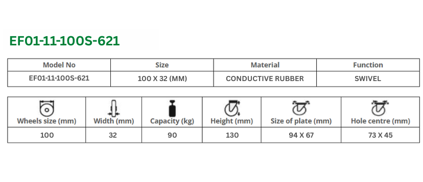 The Globe Light Medium Duty Top Plate Conductive Rubber Castor is specially designed for environments that require electrostatic discharge control. Featuring a conductive rubber wheel, it ensures safe dissipation of static electricity while maintaining quiet, non-marking, and stable movement. The top plate design provides easy installation and enhanced load stability — ideal for precision equipment and sensitive work areas.