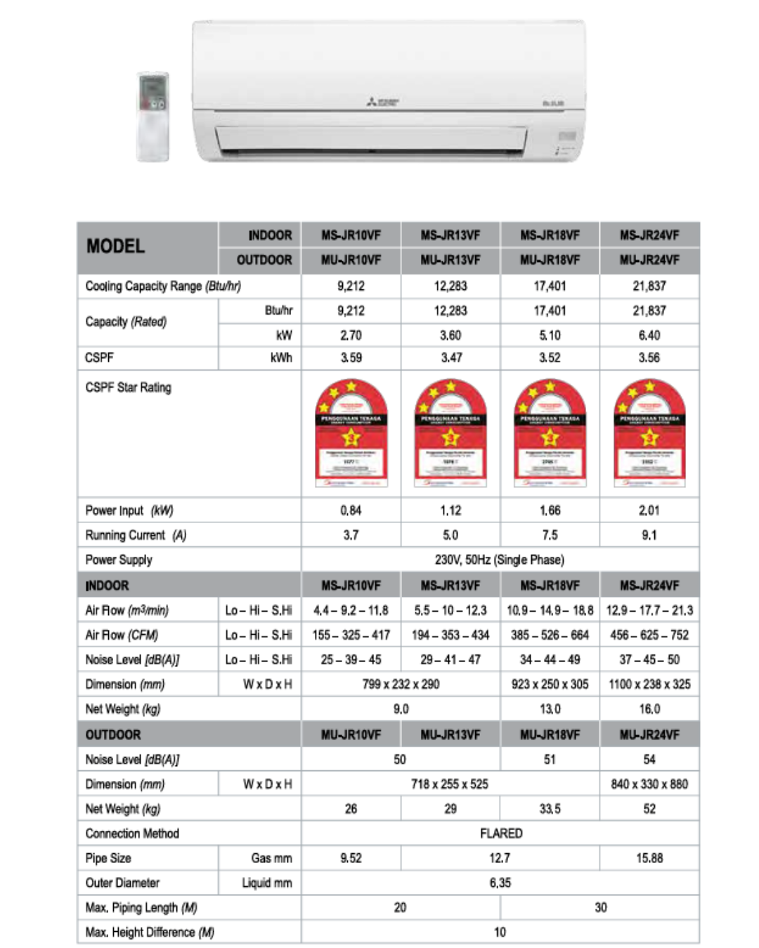 MITSUBISHI 1.5 HP NON INVERTER R32 MS-JR13VF