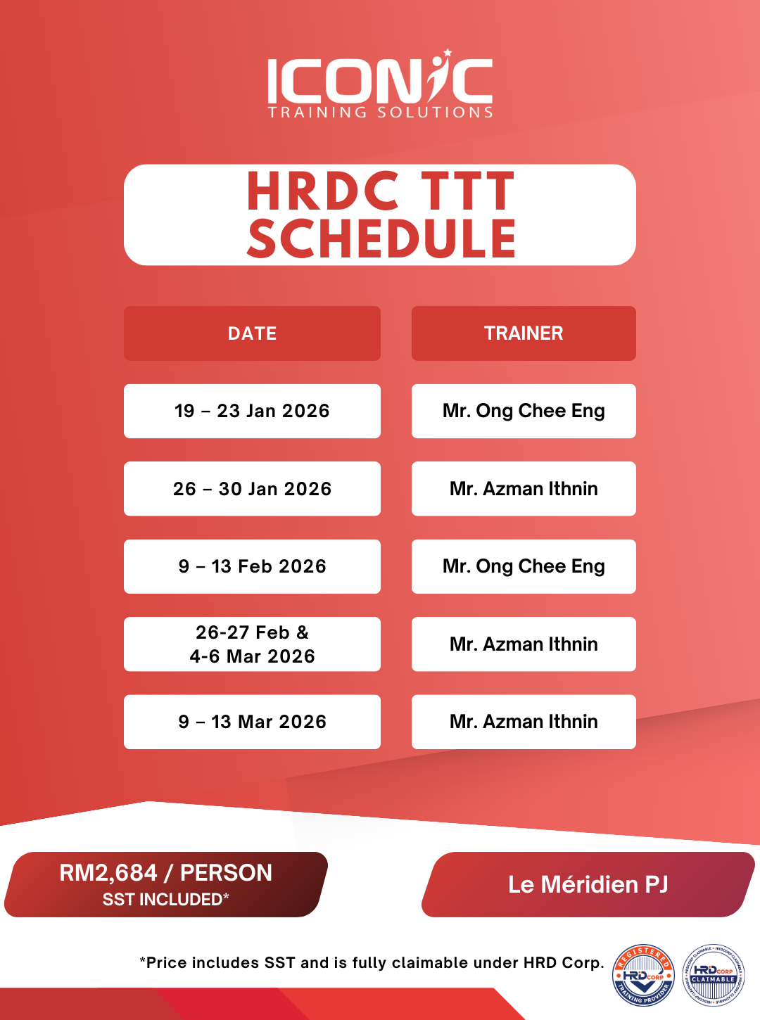 Starting 1 October 2025, the HRD Corp Train-The-Trainer program adopts the updated TTT 2.0 structure. To be certified, participants must: