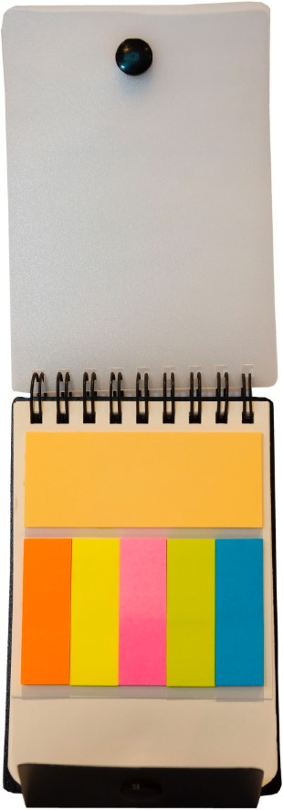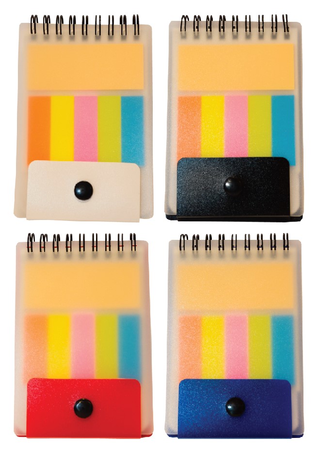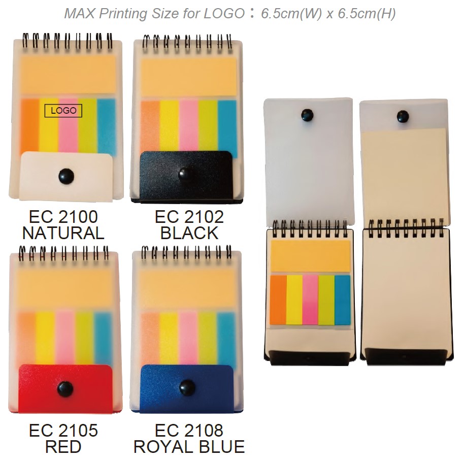 Material: Eco Notepad / PVC Cover — A practical and durable notepad with an eco-friendly and water-resistant PVC protection cover.