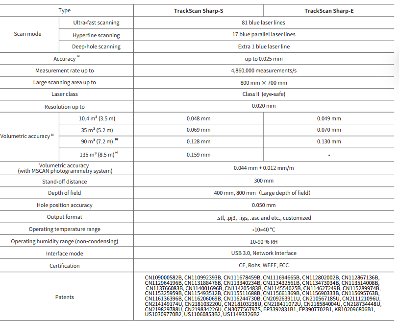 (3) The industrial-grade high-precision measurement range of TrackScan Sharp-E is up to 90 m³, and its scanning range is up to 125 m³.