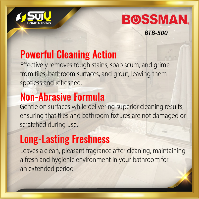 - Gentle on surfaces while delivering superior cleaning results , ensuring that tiles and bathrooms fixtures are not damaged or scratched during use