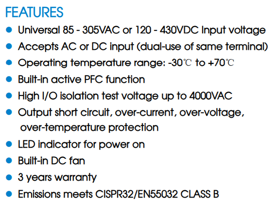 MORNSUN LMF320-23B04 AC/DC 320W ENCLOSED SWITCHING POWER SUPPLY