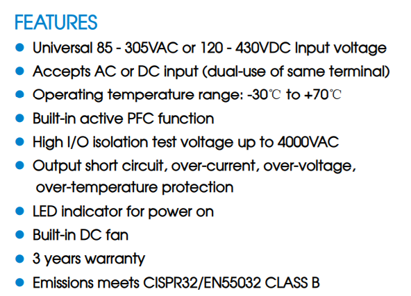 MORNSUN LMF320-23B24 - AC/DC 320W ENCLOSED SWITCHING POWER SUPPLY