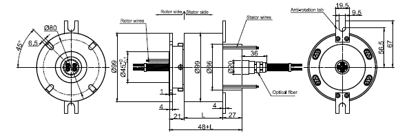 It is also especially suitable for occasion where it needs to transmit large volume data/signal from permanent position to rotation position under unlimited, continuous or discontinuous rotating, which can improve mechanical property, simplify system operation and avoid destroying fiber optics.