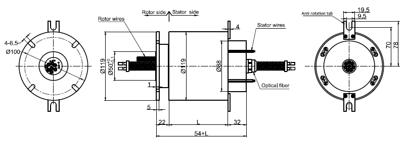 Also can be combined with electric slip ring to transmit power and high-speed data too.