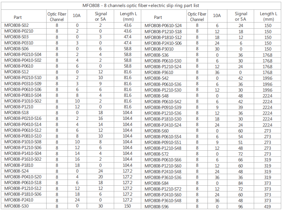 Eight Channels Fiber Optic + Electric Slip Rings (MFO808 Series)