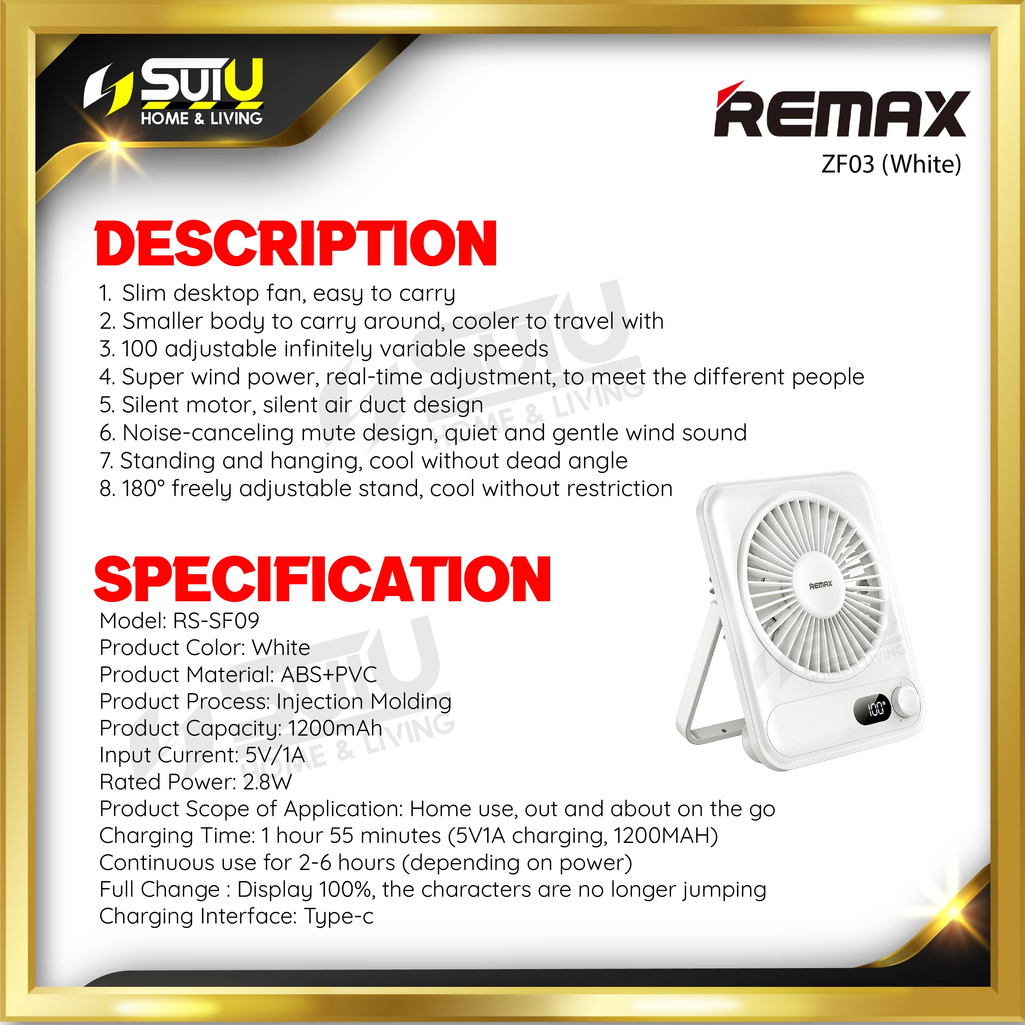 - Slim desktop fan , easy to carry