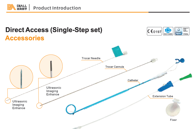 The Diall Single Step Drainage Catheter is designed to simplify drainage procedures by combining access and catheter placement into a single-step technique. This innovation helps doctors achieve faster results with improved accuracy, reducing patient discomfort and procedure-related risks.