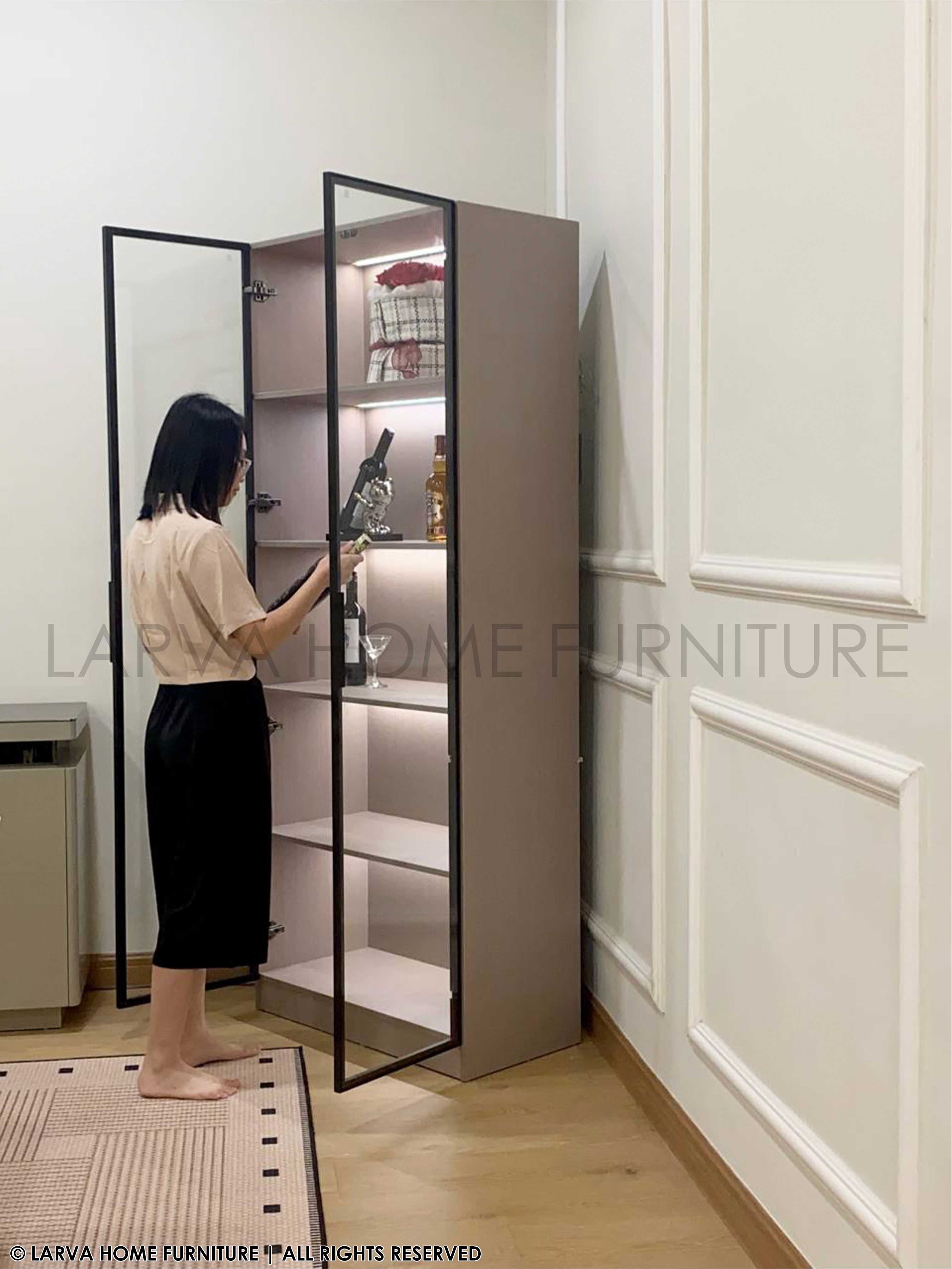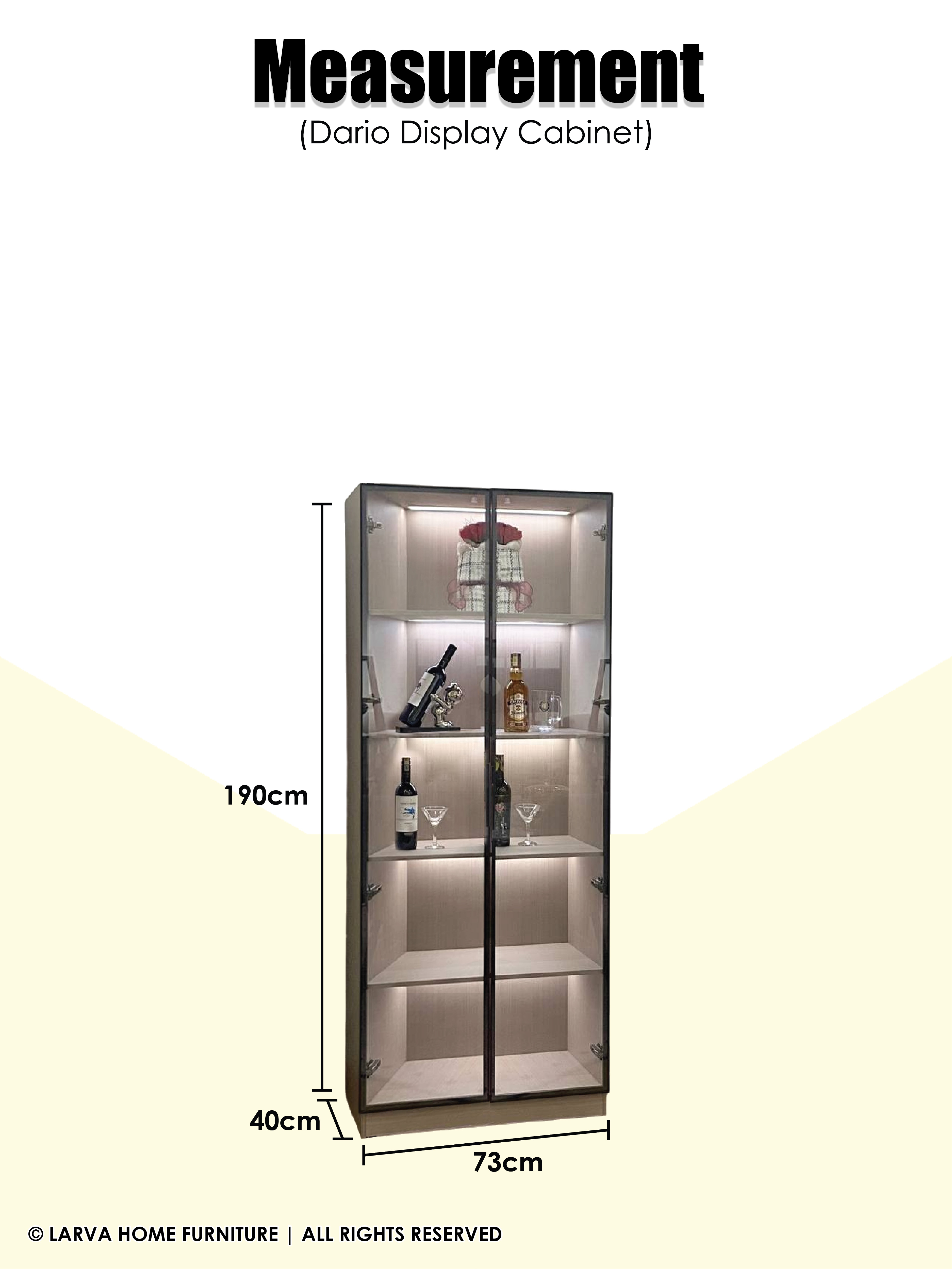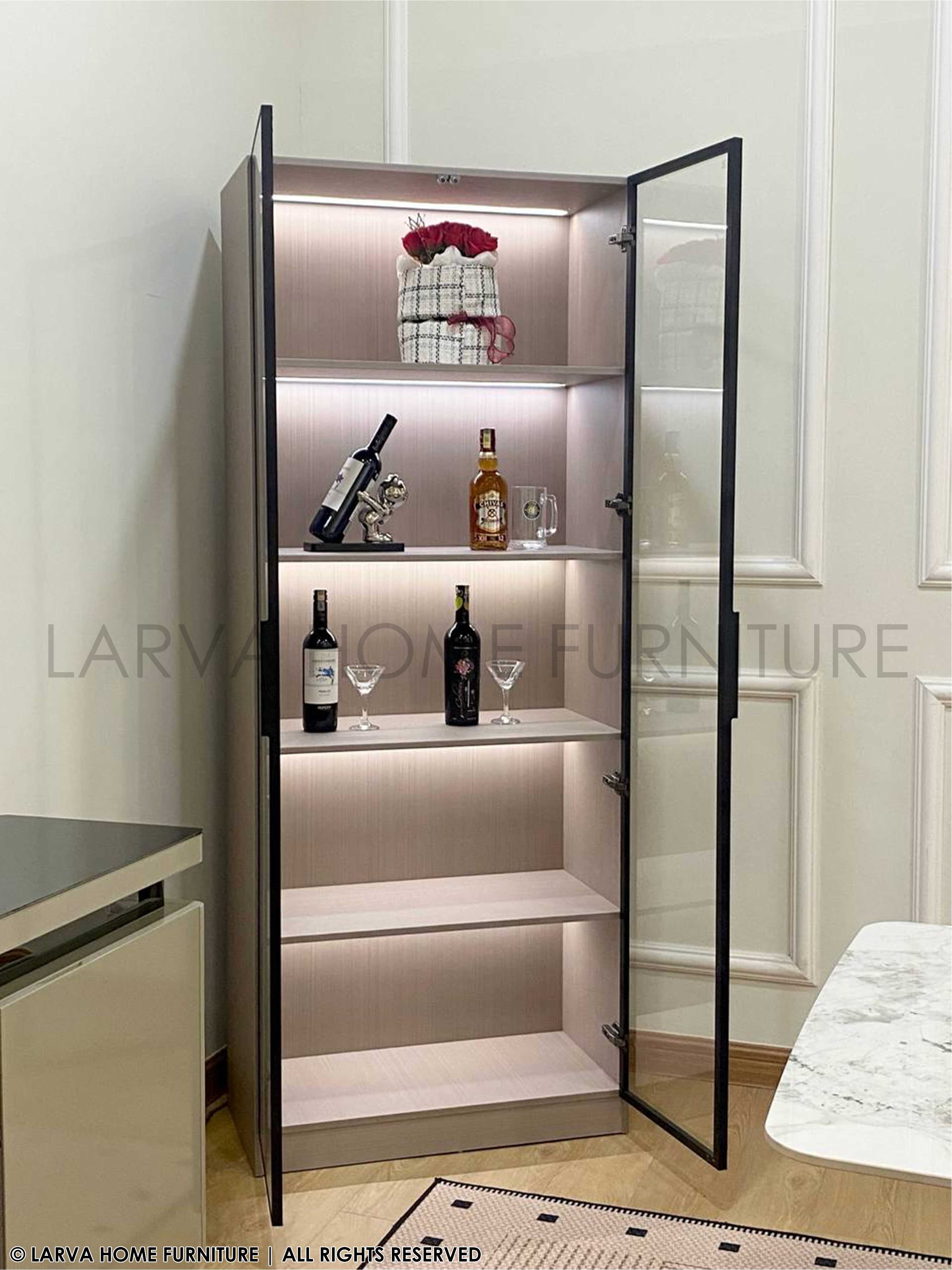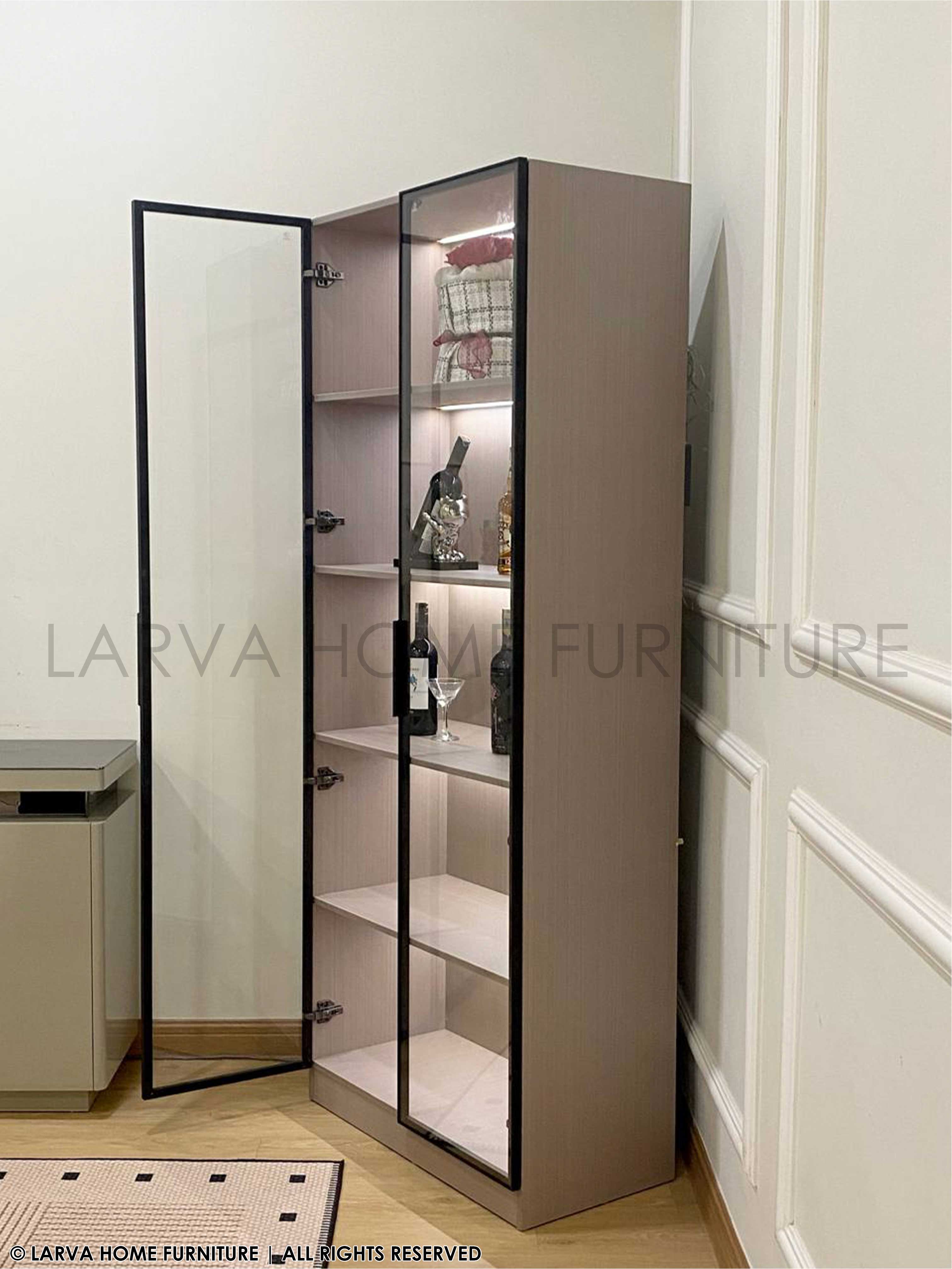 A showcase of elegance and personality. This Dario Display Cabinet turns your treasured items into a curated gallery of memories. The glass panels and warm lighting add a subtle glow of sophistication, while its sturdy modern frame keeps things grounded in timeless design. A perfect harmony of modern luxury and heartfelt homeliness.