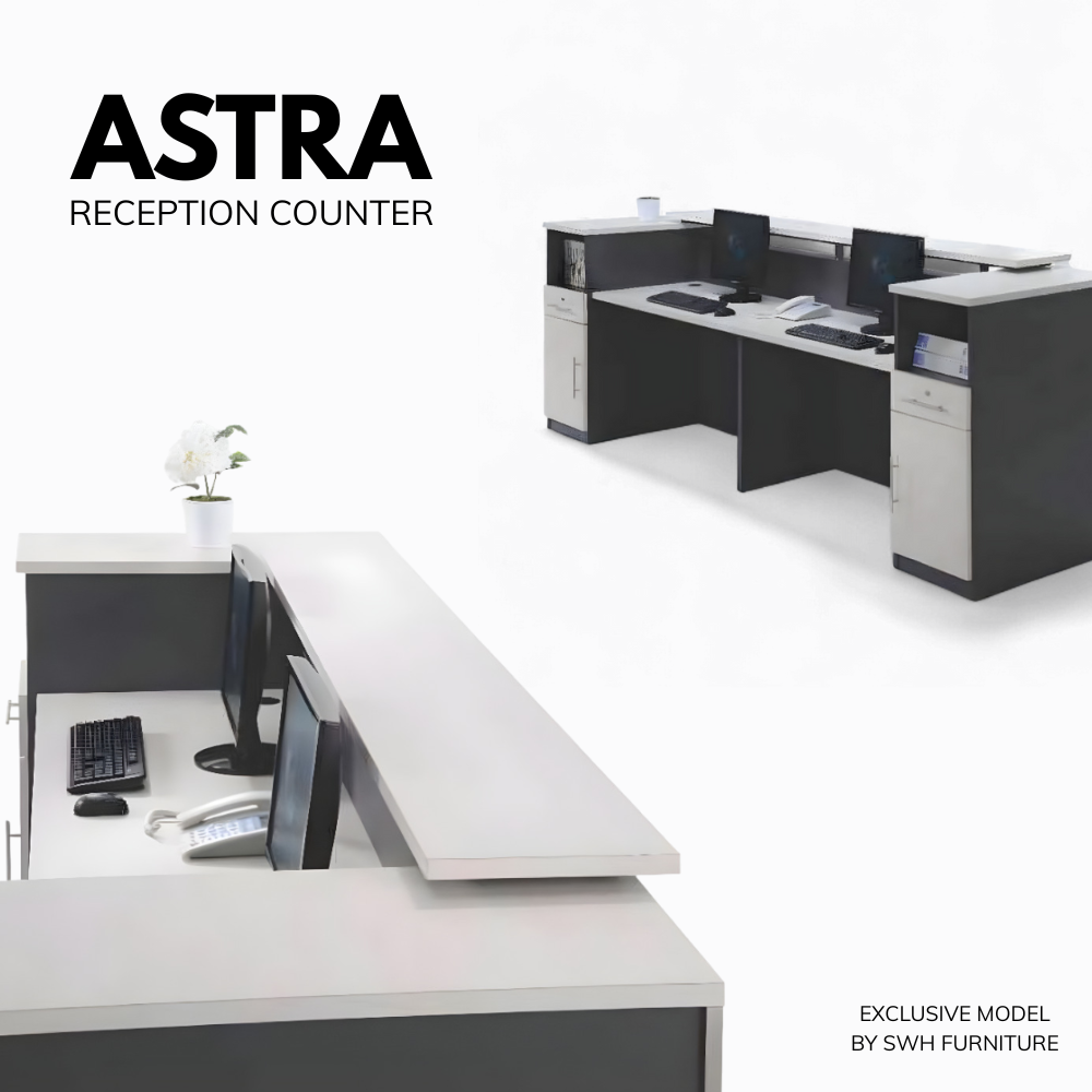 The ASTRA Reception Counter is designed to provide a professional, spacious, and functional front-desk solution. Crafted with high-quality laminated surfaces, it allows two users to work comfortably while maintaining an open and organized appearance , ideal for offices, hotels, and commercial spaces.