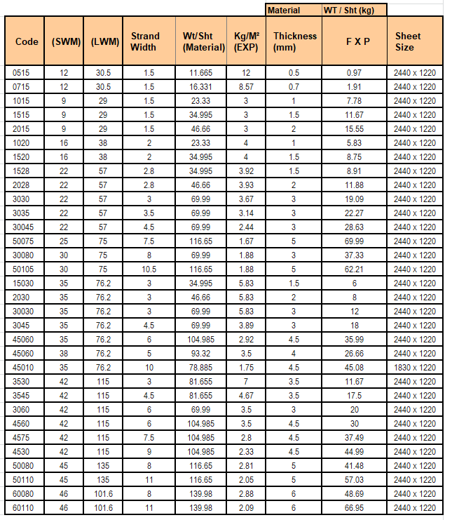 Mild Steel Expanded Metal Size Chart