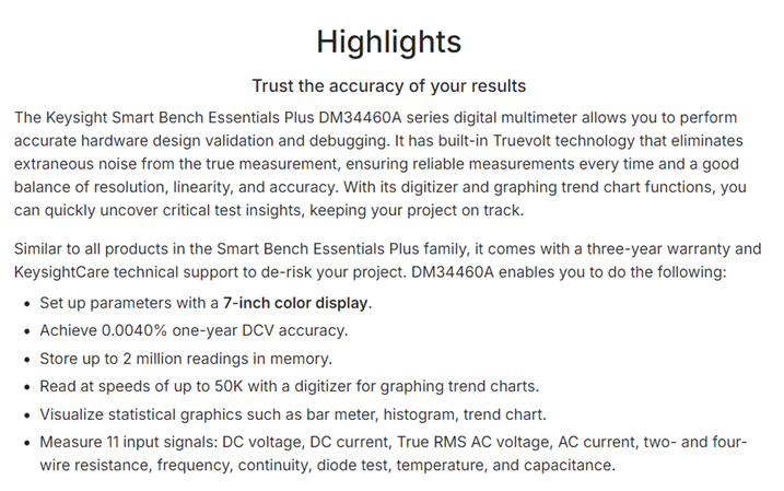 KEYSIGHT DM34460 Series Digital Multimeters