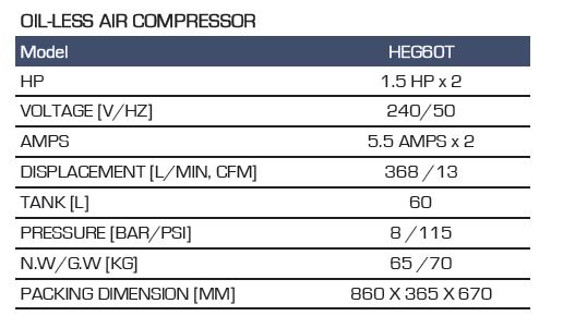 EZYLIF HEG60T OIL-LESS AIR COMPRESSOR