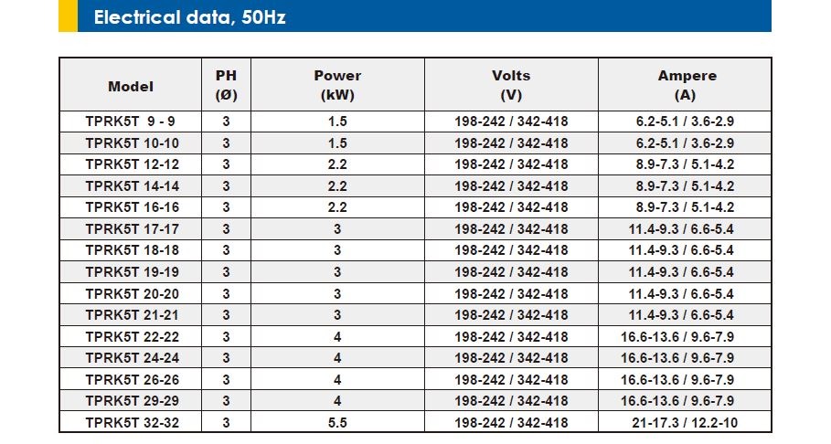 MODEL : TPRK5T 18-18, TPRK5T 19-19, TPRK5T 20-20, TPRK5T 21-21, TPRK5T 22-22, TPRK5T 24-24, TPRK5T 26-26, TPRK5T 29-29 TPRK5T 32-32