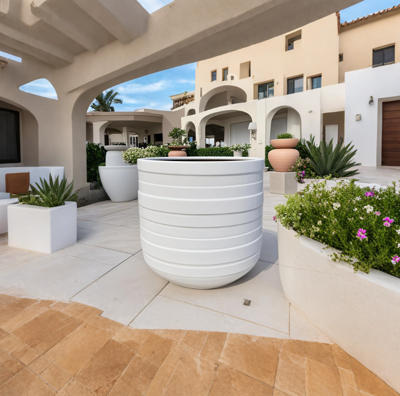 这款玻璃钢花盆是一款由玻璃纤维材料制成的高品质耐用花盆。这款花盆非常适合为任何室内或室外空间增添一丝优雅和风格。它可以用来种植花卉、草药或小树。玻璃钢花盆材料重量轻且抗紫外线,适合户外使用。这款花盆时尚现代的设计可搭配任何装饰风格。使用这款玻璃纤维花盆为您的花园或家增添时尚且实用的元素。