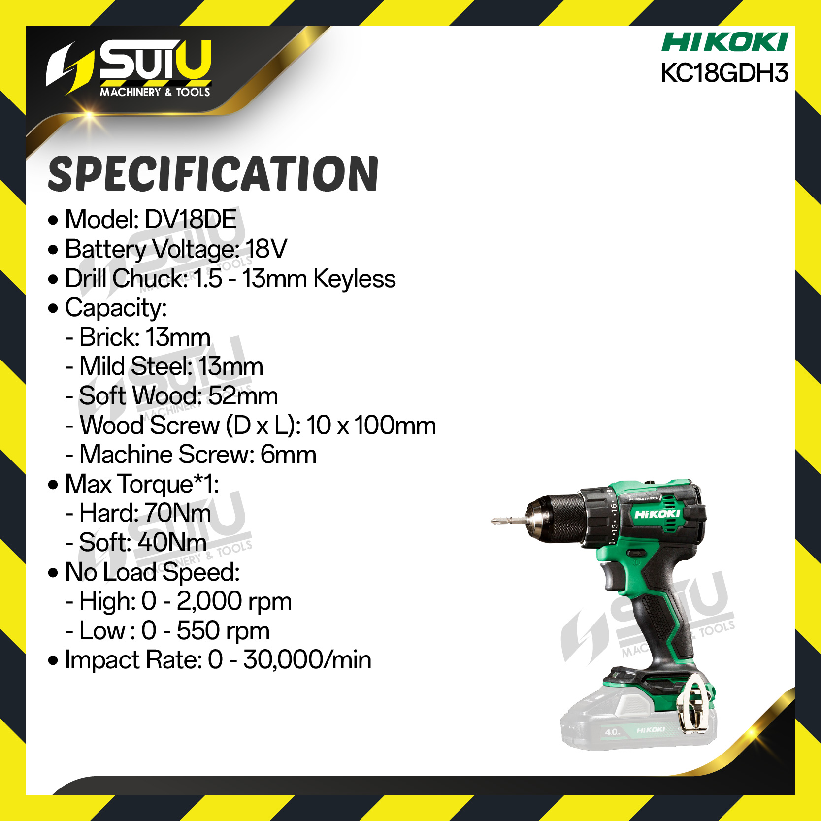 HIKOKI KC18GDH3 18V Cordless Combo Kit (DH1826DA + G1810DE + DV18DE)