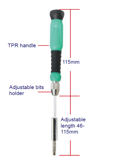 Adjustable bit holder design for easy work inside narrow or hard to reach places