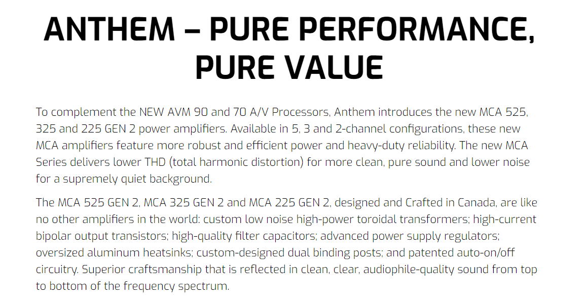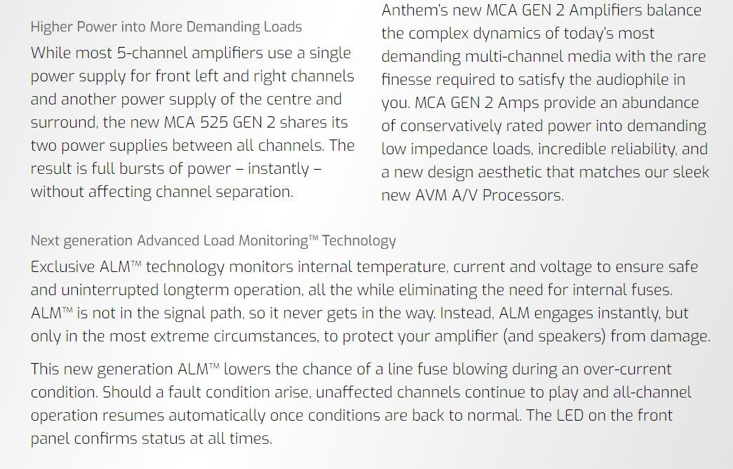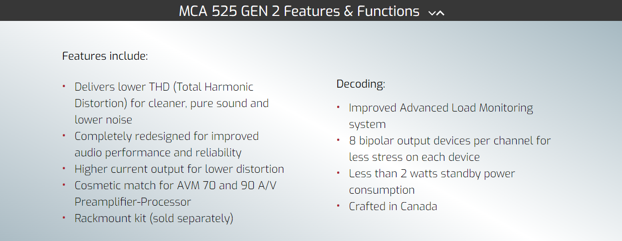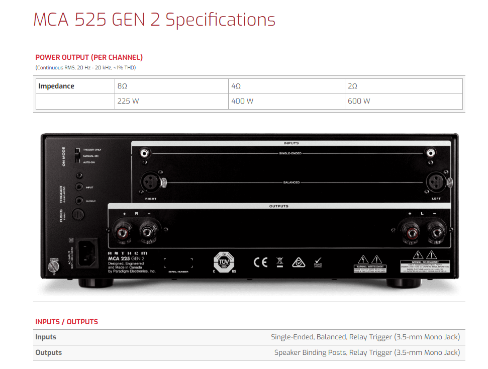 Anthem MCA Series 525 Gen2 Power Amplifier