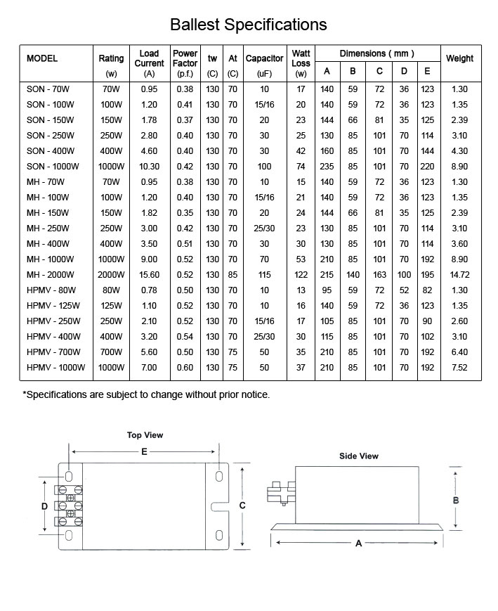 | IEC Standard | : | 1995 & IEC 60923:1995 |