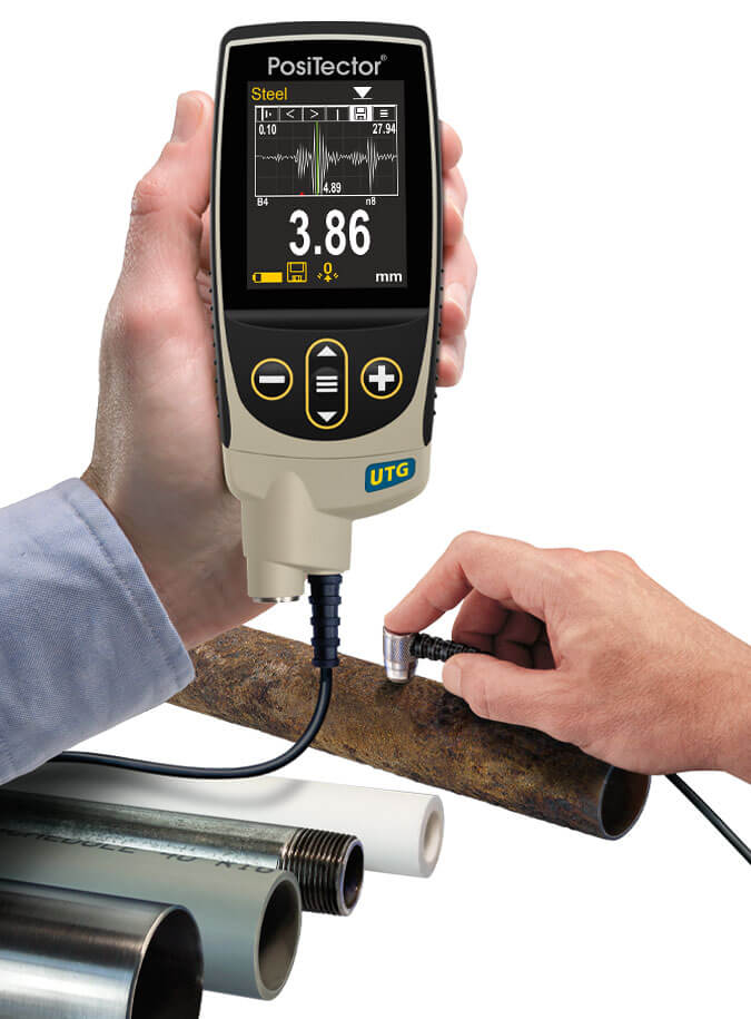 All gages come complete with body and probe, couplant, protective rubber holster, wrist strap, 3 AAA alkaline batteries, instructions, protective carrying case, protective lens shield, Long Form Certificate of Calibration traceable to NIST or PTB, USB cable, PosiSoft Software, two (2) year warranty.