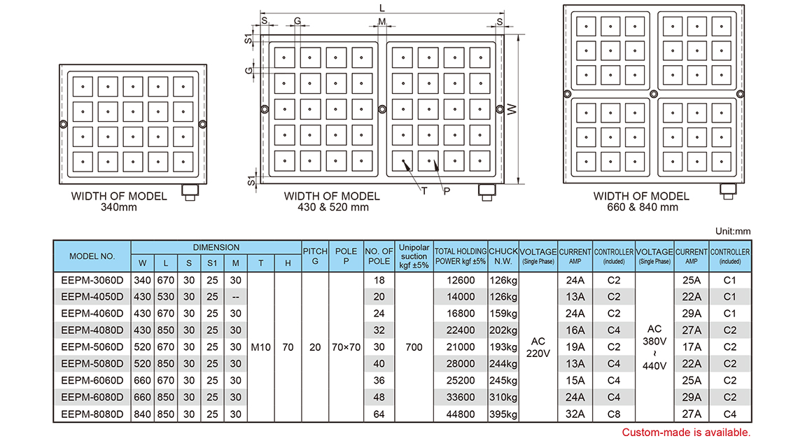 Pole 70X70 mm, Flux Line 40 mm, Magnetic Force 2800±5% kgf/4 Poles