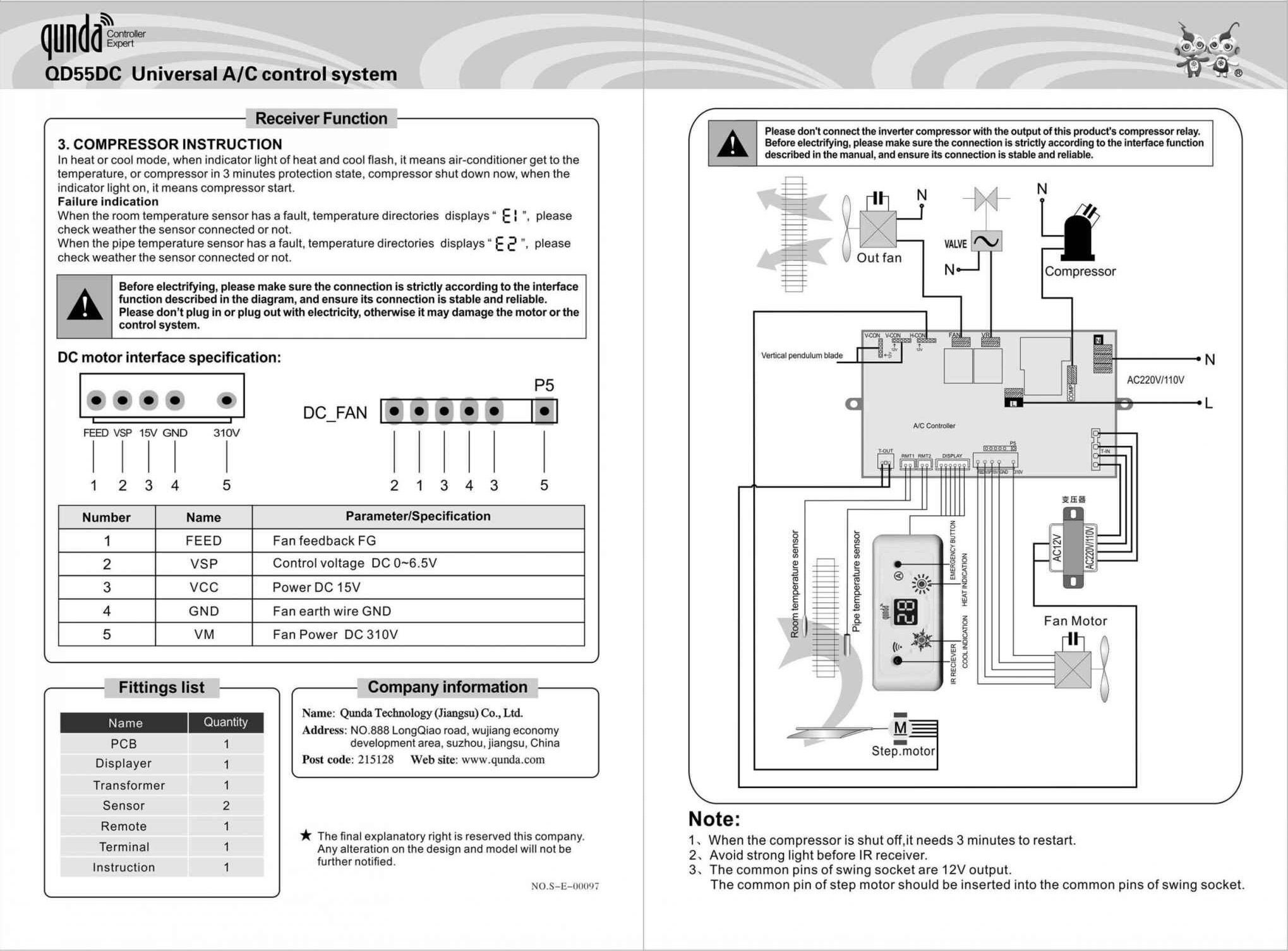 QD55DC PAPAN LITAR PENYONGSANG DC UNIT DALAMAN PELBAGAI JENIS PENGHAWA DINGIN
