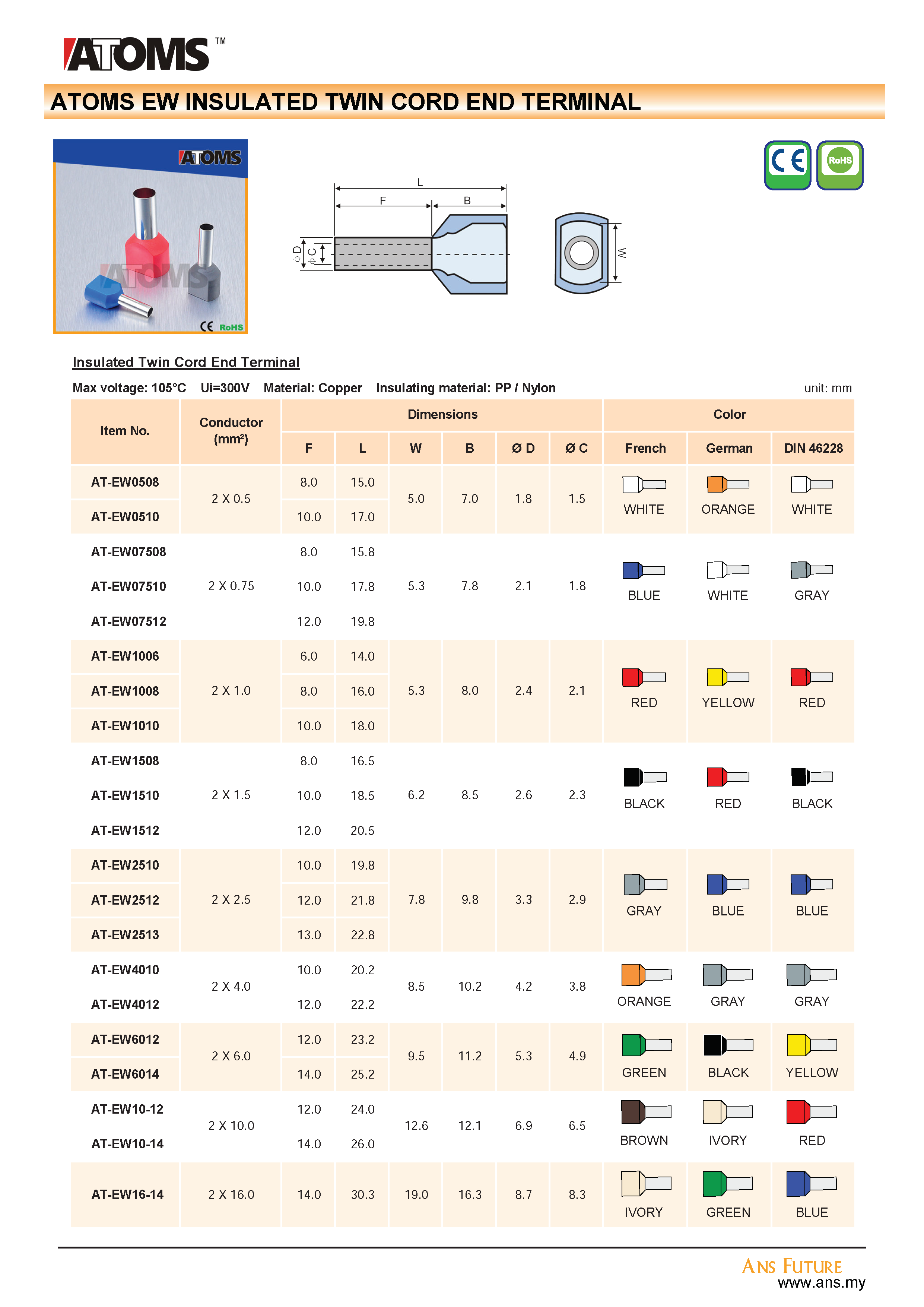 Insulated Twin Cord End Terminal (EW)