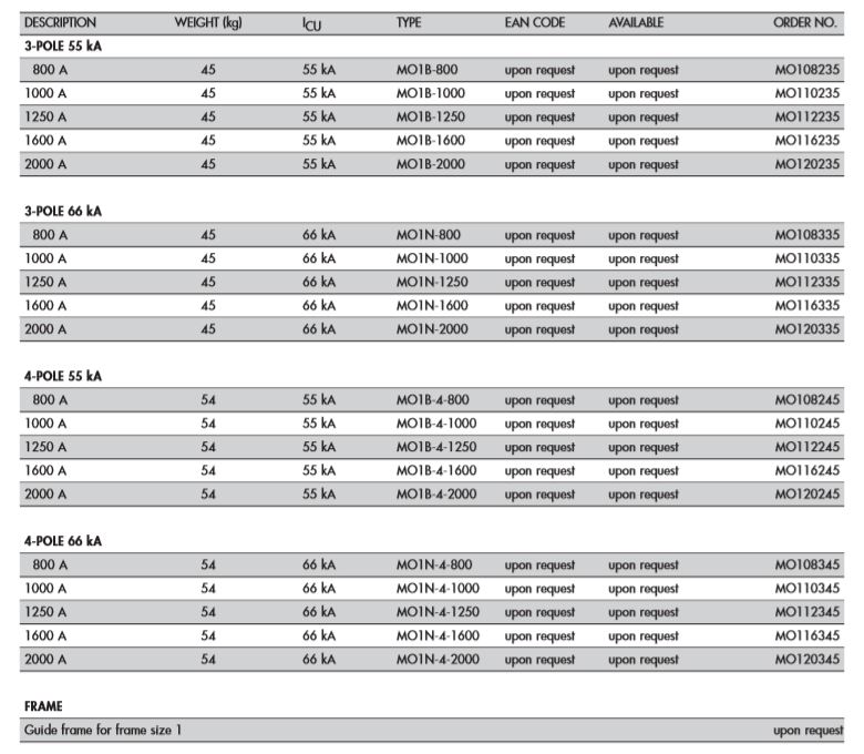 MO – FRAME SIZE 1 WITHDRAWABLE MODELS