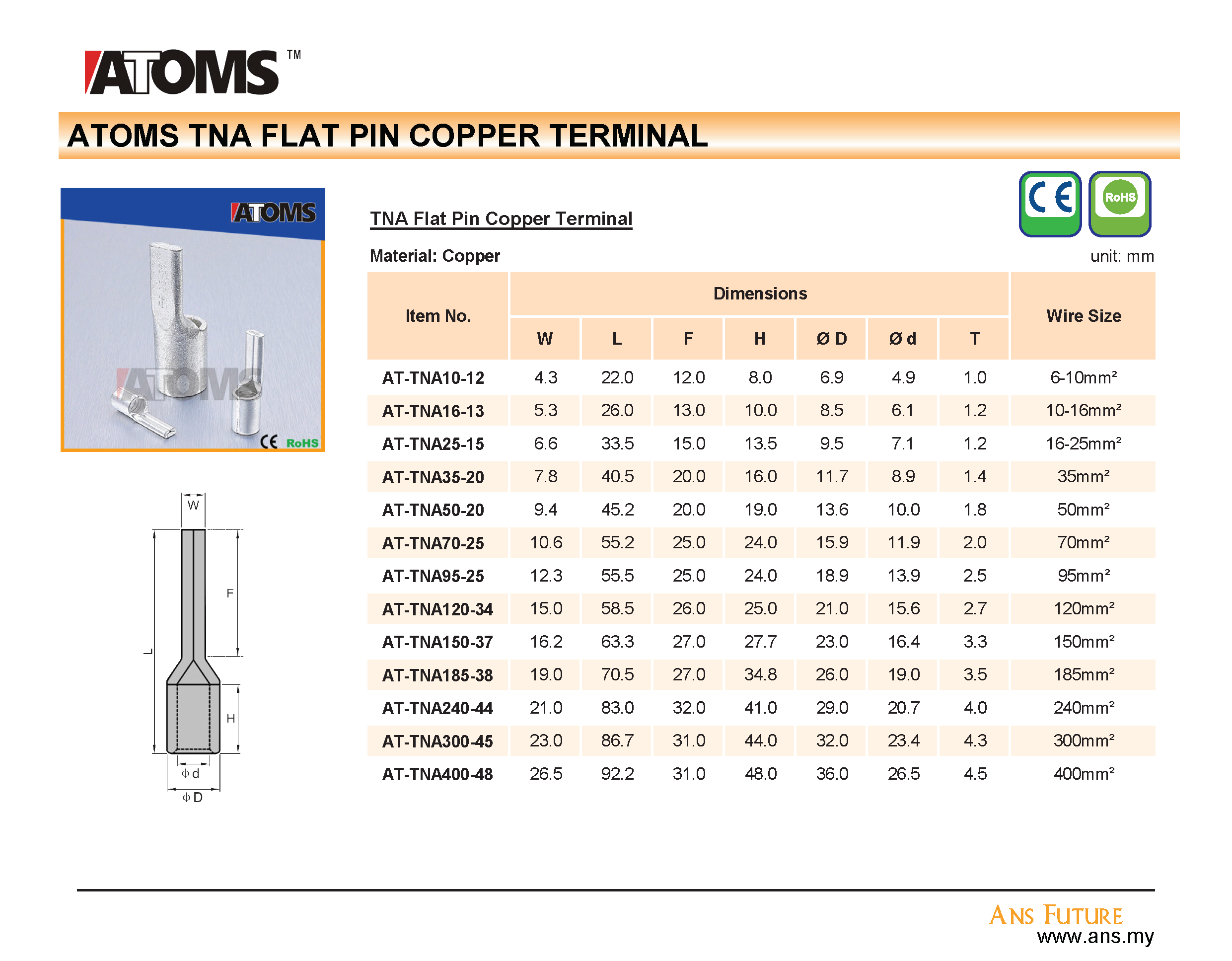 Flat Copper Ture Terminal (TNA)