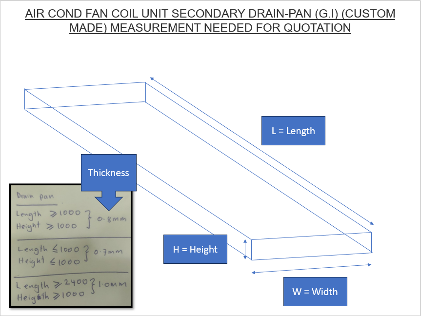 SECONDARY G.I DRAIN PAIN C/W 3MM PE FOAM (EXT.) (600[L]X600[W]X50MM[H]X0.7MM[T])(DRAIN PIPE:Ø19.05MM)(BBB PVC SOCKET 15MM)