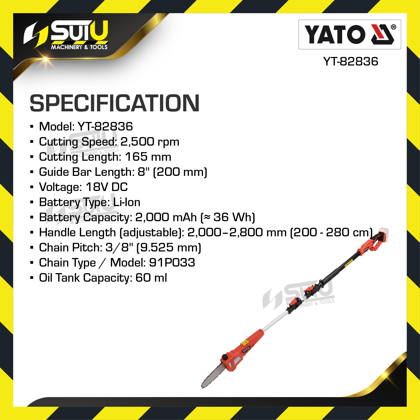 - 1 x YT-82836 Cordless Telescopic Pole Saw (Machine only)
