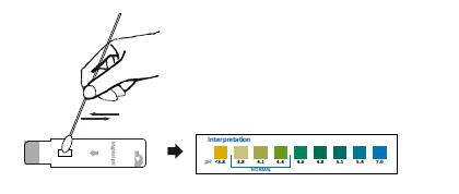 3 Apply the head of swab onto PH area of the test panel for at least 5 times,make sure enough secretion is applied on the pH area of the test panel.