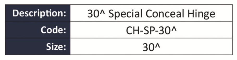 30^ SPECIAL CONCEAL HINGE