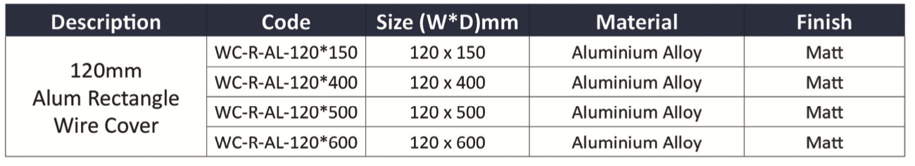 120MM RECTANGLE WIRE COVER - ALUMINIUM