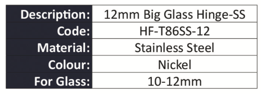 12MM BIG GLASS HINGE-SS