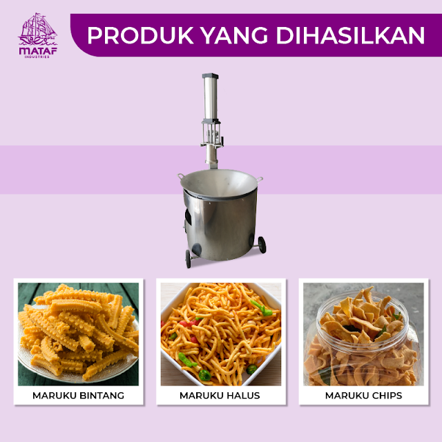 Mesin ini boleh menghasilkan tiga jenis maruku iaitu Maruku Kasar, Maruku Bintang, dan Maruku Chips — sangat sesuai untuk pengusaha makanan berskala kecil dan sederhana.