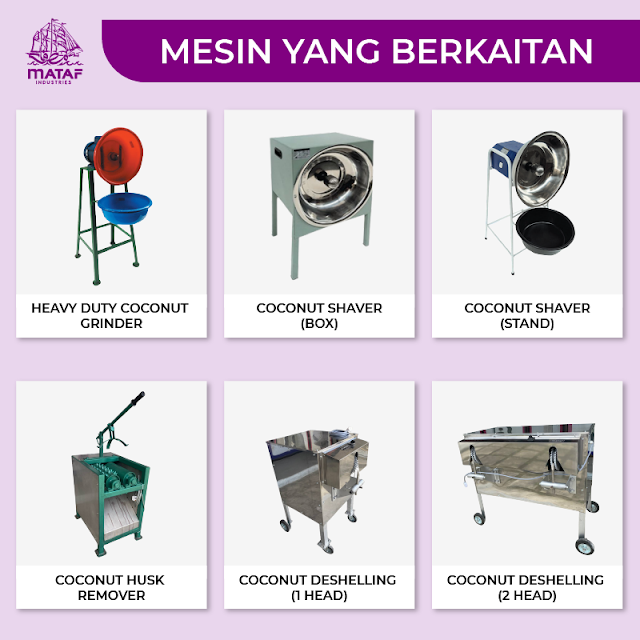 Jika kena pada tekniknya, 20kg kelapa boleh hasilkan 30kg santan. Dengan margin keuntungan sebanyak 50%.. Di sini Mataf Industries ingin menawarkan mesin perah santan.