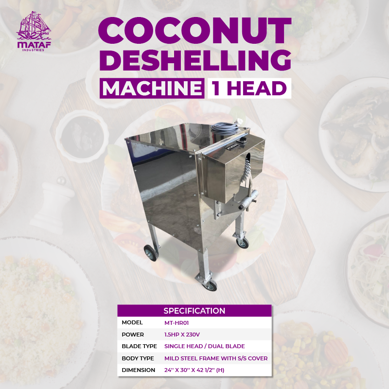 Mesin Pengupas Tempurung Kelapa membantu pengguna mengupas tempurung kelapa dengan cepat dan berkesan, sekaligus menjimatkan masa dan tenaga. Ia sangat sesuai digunakan di kilang kecil, perniagaan pemprosesan kelapa, atau barisan pengeluaran makanan yang memproses kelapa dalam jumlah besar. Rangka yang kukuh diperbuat daripada mild steel dengan penutup stainless steel memastikan ketahanan dan kebersihan, manakala bilah jenis single head memberikan prestasi yang konsisten setiap kali digunakan.