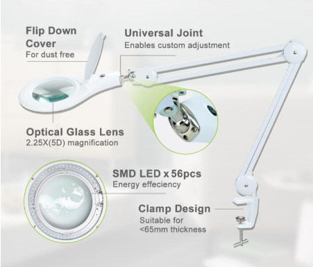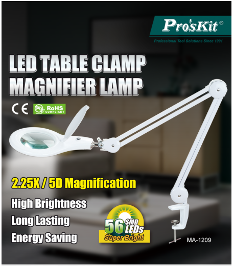 PRO'SKIT MA-1209LI LED TABLE CLAMP MAGNIFIER LAMP 220V