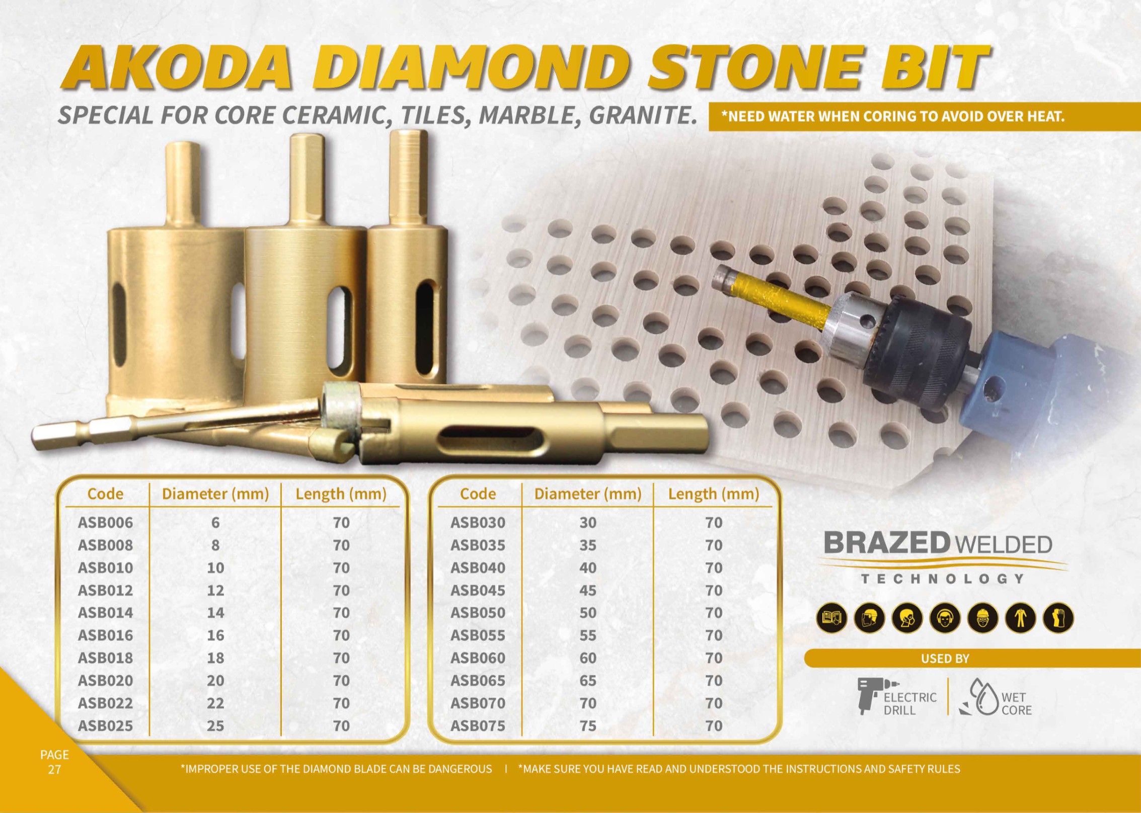 Sintered diamond bits have the diamonds embedded directly into the metal tip of the bit. As the tip wears down, new diamonds come to the surface. Sintered diamond drill bits are often designed for deep drilling in stone, tiles or masonry, Sintered diamond drills are more expensive and because they are heavy duty, they drill more slowly, but they last longer. Sintered diamond bits can last 30 to 50 times longer than a bonded diamond bit, sometimes even longer. The life of any type of diamond drill depends upon the hardness, abrasiveness and thickness of the material being drilled and the specific drilling techniques used (drill speed, pressure and lubrication).